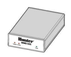 Sistema centralizado de control, IMMS "HUNTER", para red de programadores de riego, formado por software para PC, para control centralizado de hasta 100 zonas de riego y 100 programadores por zona, modelo IMMS-CD, unidad central de conexión fija, para comunicación vía cable entre el PC y la unidad principal, modelo IMMS-CCC-E, sensor de caudal, modelo Flow-Clik-IMMS "HUNTER", unidad principal con comunicación vía cable con la unidad central, modelo IMMS-SI-HW-E, unidades secundarias con comunicación vía cable con las otras unidades y con los programadores, modelo IMMS-CI-HW-E, cable de comunicación, modelo GCBL, bajo tubo protector de polietileno de doble pared y cable de comunicación, modelo GCBL, bajo tubo protector de PVC rígido, blindado. |